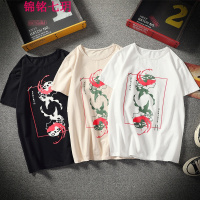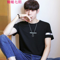 锦铭七玥2018夏装新款青帅气时尚圆领大码印花短袖T恤男韩版套头宽松T恤