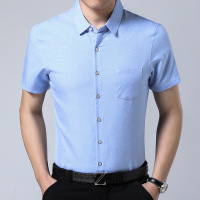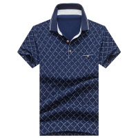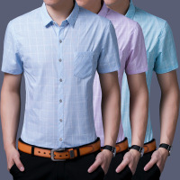 短袖T恤 2018夏季新款男装格子翻领夏装中老年男士商务T恤衫