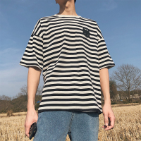 俊言2018春夏季男士半袖T恤圆领短袖条纹五分袖宽松半截袖学生衣服潮