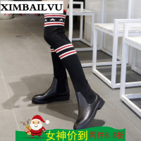 品牌张天爱同款韩版牛皮粗跟过膝靴7cm中跟长靴羊皮显瘦弹力靴长筒时尚女靴子骑士靴黑色