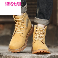 锦铭七玥秋季情侣马丁靴男牛反绒皮短靴复古女工装机车靴沙漠靴高帮鞋