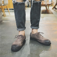 日系复古风 四季男鞋 男式木纹底擦色休闲皮鞋潮鞋板鞋X63P135