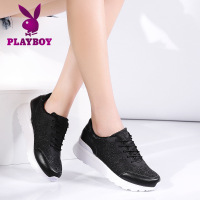 花花公子2017新款内增高白色运动鞋女韩版百搭透气跑步休闲小白鞋