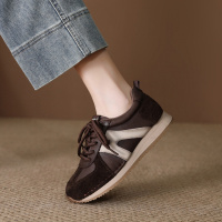 棕色德训鞋女2026春秋新款头层牛皮阿甘鞋软底复古运动休闲鞋子