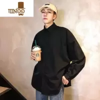 YANXU黑色衬衫男款长袖潮流韩版百搭休闲日系港风男生白衬衣外套
