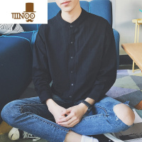 YANXU黑色立领衬衫男士长袖夏季男装薄款日系宽松衬衣休闲修身上衣外套