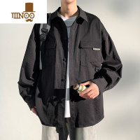 YANXU日系休闲复古工装衬衫男显瘦宽松长袖衬衣潮流黑色夹克外套