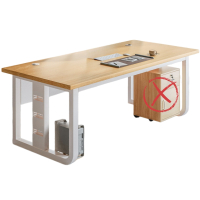 锦北木制办公桌家用简易书桌学习桌茶白色+白架 200x60x74cm