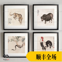 十二生肖新中式国画 鼠牛虎兔龙蛇马羊猴鸡狗猪 客厅有框装饰挂画