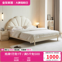 全友家居奶油风简约花瓣生态科技皮软包床屏双人床实木高脚卧室家具