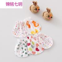 锦铭七玥新生儿纯棉防抓手套 卡通印花护手套 婴儿用品批发 防抓脸手套
