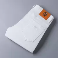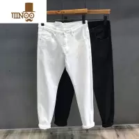 秋季新款高端白色牛仔裤男士潮牌修身小脚弹力休闲长裤子男款