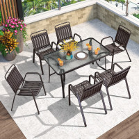 苏宁 金菲罗格 办公家具 露天户外休闲塑木桌椅组合 6+1[玻璃长桌80x120]
