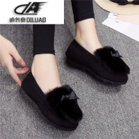 2017秋冬学生加绒保暖豆豆鞋女鞋孕妇平底防滑毛毛棉鞋老北京布鞋