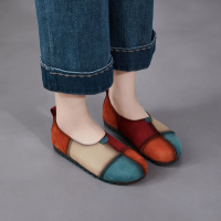 真皮拼色复古女鞋子2026春季新款中年妈妈休闲鞋平软底乞丐单鞋女