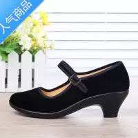 SUNTEK老北京布鞋女广场舞鞋酒店黑色工作鞋礼仪鞋女士黑红色平绒高跟鞋