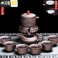 三维工匠半全自动懒人泡茶器功夫茶具家用石磨盘现代日式陶瓷创意茶壶茶杯 紫砂进宝自动茶具