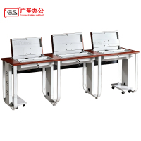 三能 办公家具多媒体室电脑桌双位箱体钢木翻转电脑桌简约现代多媒体电脑桌电脑室桌子 椅子