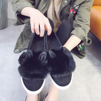 2017秋冬款韩版圆头平底单鞋毛毛鞋女一脚蹬懒人鞋毛球浅口豆豆鞋