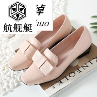 2017新款女鞋粉色蝴蝶结方头单鞋真皮休闲四季鞋低跟中口懒人鞋41大码鞋42