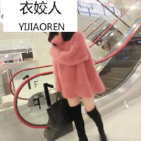 衣姣人(YIJIAOREN)女装2018欧美风性感水貂绒衫中长款加厚宽松显瘦高领套头毛衣女堆堆领时尚貂绒外套上