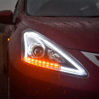 新骐达大灯总成改装天使眼LED日行灯双光透镜透镜氙气灯新骐达氙气灯大灯总成七天无理由退货 品质保证