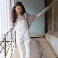 2017新款背带裤女春秋新款2017韩版百搭宽松学生黑白色破洞牛仔九分连体裤