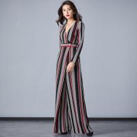 拼接撞色连衣裤2018秋季新款女装高腰阔腿裤宽松显瘦连体衣
