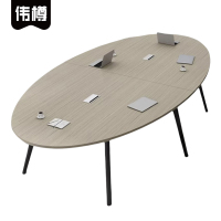 三圣 办公家具油漆会议桌长桌贴实木皮会议台洽谈桌接待椭圆条形板式会议桌简约现代 2.4米