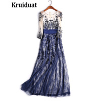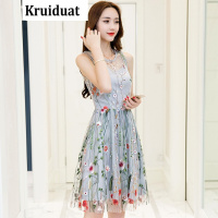 Kruidvat2017夏装新a字礼服网纱欧根纱绣花连衣裙