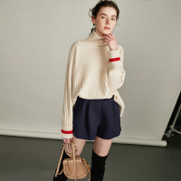 新意时髦OVERSIZE横竖条纹羊毛混纺衫W20484