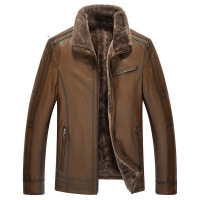 高端皮毛一体皮衣男翻领领修身绵羊皮真皮皮衣男士皮草外套棕色