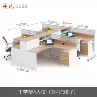 质凡屏风带高柜办公桌多人组合职员桌 干字型四人位(含4把椅子)