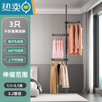 敬平顶天立地置衣架晾衣架落地折叠伸缩晾衣杆阳台飘窗晾衣器挂衣架 黑色立杆+3个折叠翅膀 大