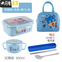 三维工匠小学生304不锈钢饭盒带盖防摔防漏长方形卡当盒学生分格餐盒 蓝色饭盒+耳碗+包[无隔板]赠304不锈钢筷勺