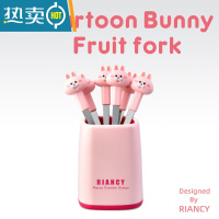 敬平水果叉子304不锈钢蛋糕甜品叉收纳罐套装家用儿童可爱水果签果插 304Bey兔水果叉(本色6支装) (赠削