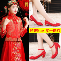秀禾鞋中式婚鞋女粗跟平底婚礼红鞋新娘鞋红色平跟孕妇大码结婚鞋