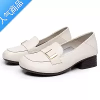 SUNTEK乐福鞋女圆头中跟小皮鞋一脚蹬女鞋软底妈妈鞋子白色粗跟单鞋