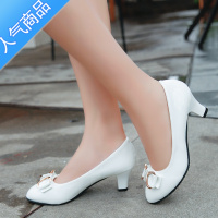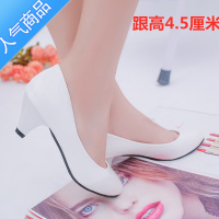 SUNTEK四季百搭女职业黑白色浅口工作女鞋高跟中跟小皮鞋子单鞋粗跟圆头