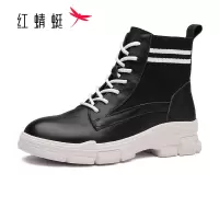 红蜻蜓休闲鞋女春秋高帮系带女鞋学生时尚低筒短靴厚底显高休闲运动皮鞋女靴子