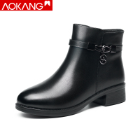 红蜻蜓短靴女冬季妈妈鞋棉鞋女中老年人真牛皮软底防滑保暖棉靴加厚绒棉皮鞋