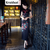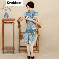 Kruidvat2017夏季新款丝绸旗袍连衣裙低开衩复古优雅长款半袖旗袍BJS如图