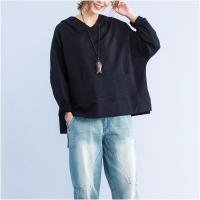 2016早秋新款文艺范纯棉下摆开衩连帽套头纯色宽松短款长袖卫衣女