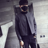 毛呢大衣年秋冬新款男士短款韩版潮流外套男式圆领毛呢大衣男