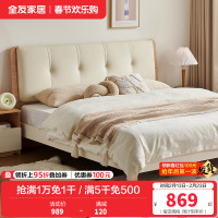 全友家居新中式卧室生态科技皮舒适软靠床屏橡胶木板木床双人床