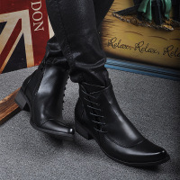 2017新款2017年新款尖头皮靴子男夏季马丁靴英男伦短靴切尔西时尚高跟短靴