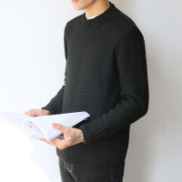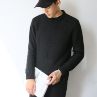 莞馨(wanxin)新款2016韩版保暖简约青年男士黑色百搭纯色学生学院风潮基础款毛衣男