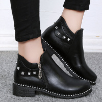靴子女秋款2017新款女鞋铆钉小跟短靴女粗跟英伦风加绒及踝靴女靴