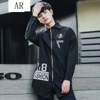 长袖衬衫男2017新款情侣时尚潮流纯棉长袖衬衫印花长款风衣开衫外套男