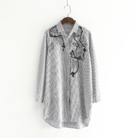 文艺风长款衬衫春季新品女翻领开衫刺绣立体花枝长袖上衣